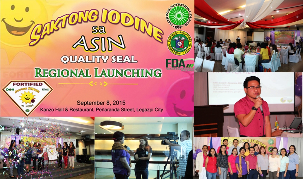 Legazpi City –The National Nutrition Council Bicol in partnership with the Department of Health Region V and Food and Drug Administration Field Office V launched in the Bicol Region the “Saktong Iodine sa Asin” Quality Seal last 08 September 2015 at Kanzo Hall & Restaurant, Legazpi City. This is to promote usage and raise awareness on the benefits of fortification of salt as a means to increase the iodine intake of the population particularly of the at risk group thus eliminating the problem of Iodine deficiency.